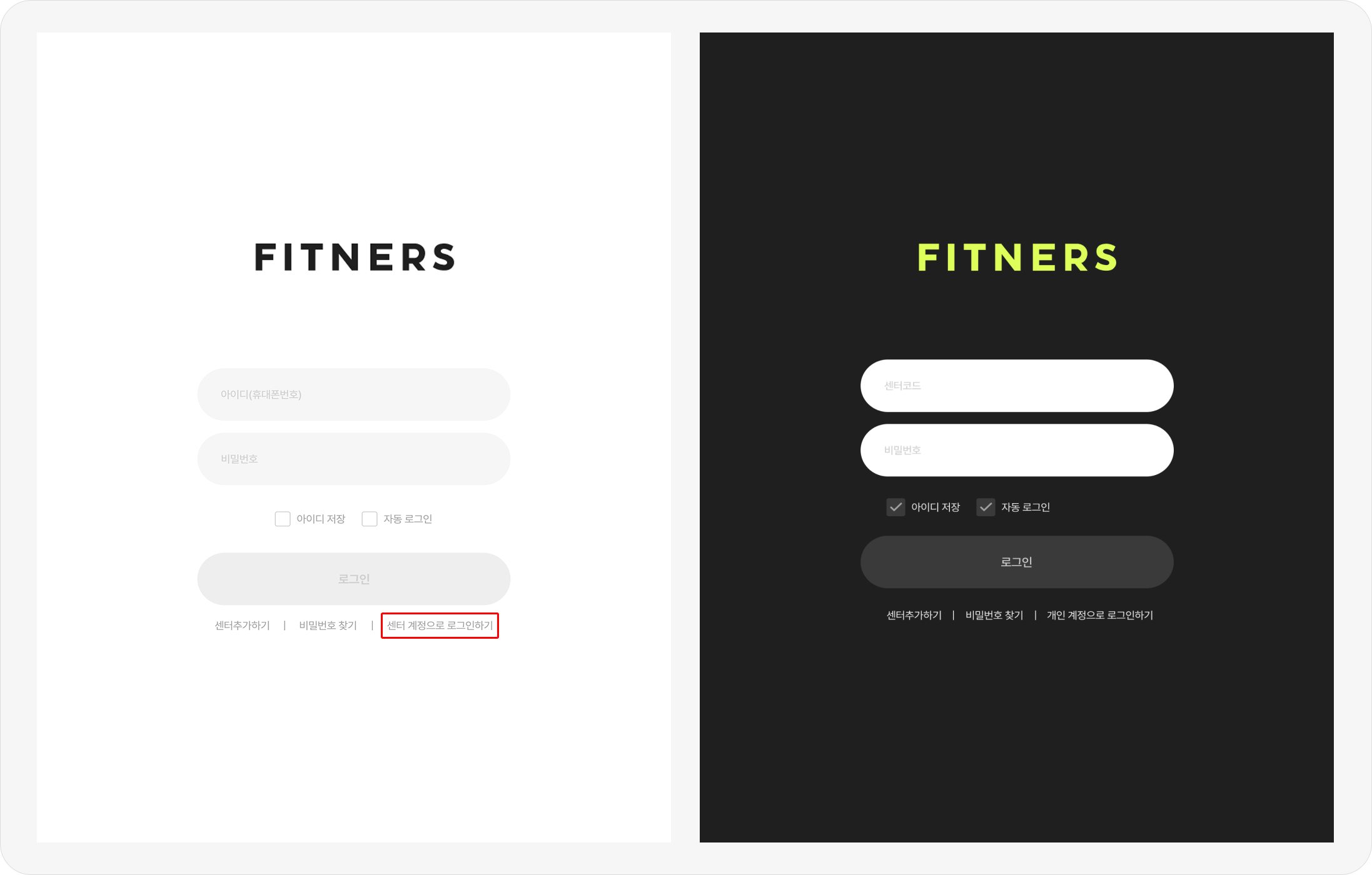 피트너스 CRM 센터 로그인 페이지 (https://crm.fitners.io/login/personal)로 접속하거나