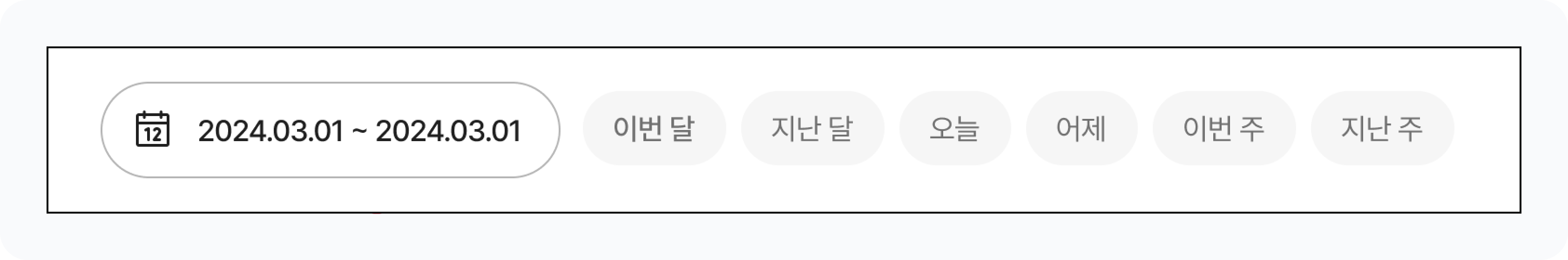 이번 달/지난 달/오늘/어제/이번 주/지난 주버튼을 눌러 기간을 설정할 수 있어요.