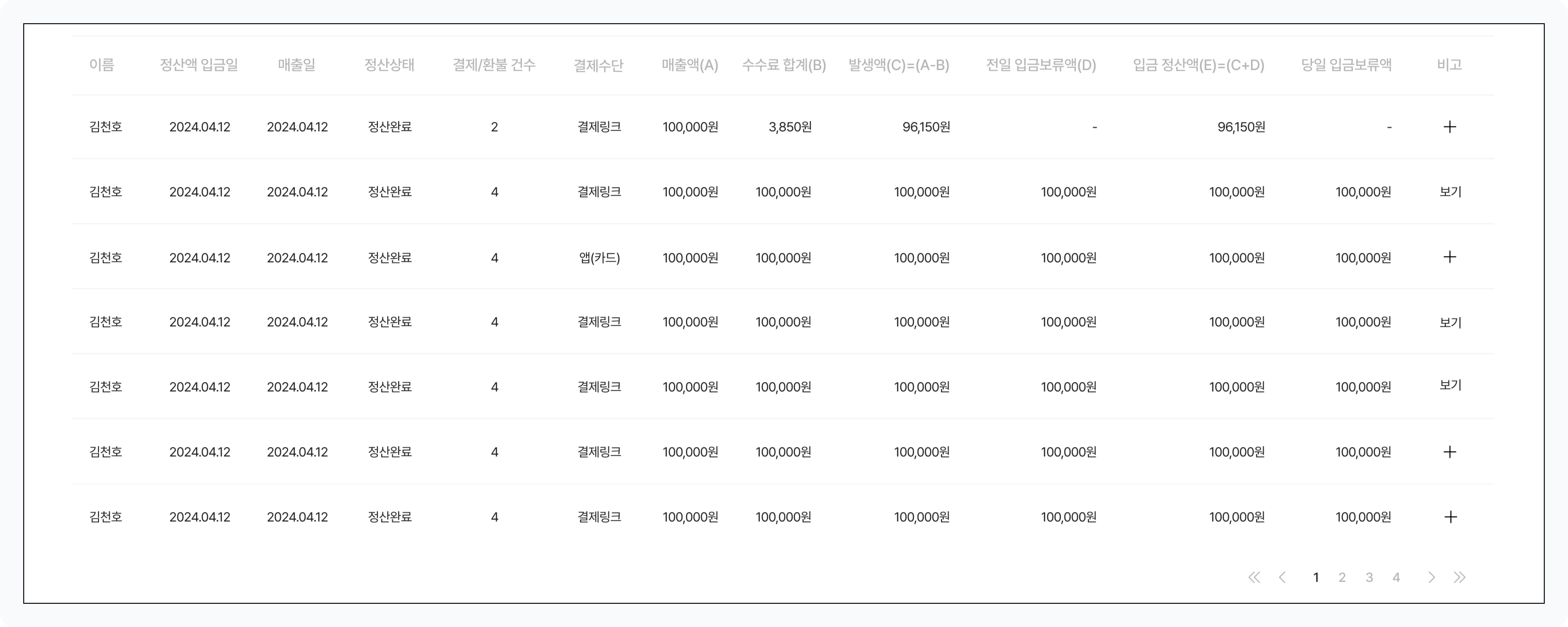 발생액(C)=(A-B) : 매출액에서 수수료를 제외한 금액이 표시됩니다.