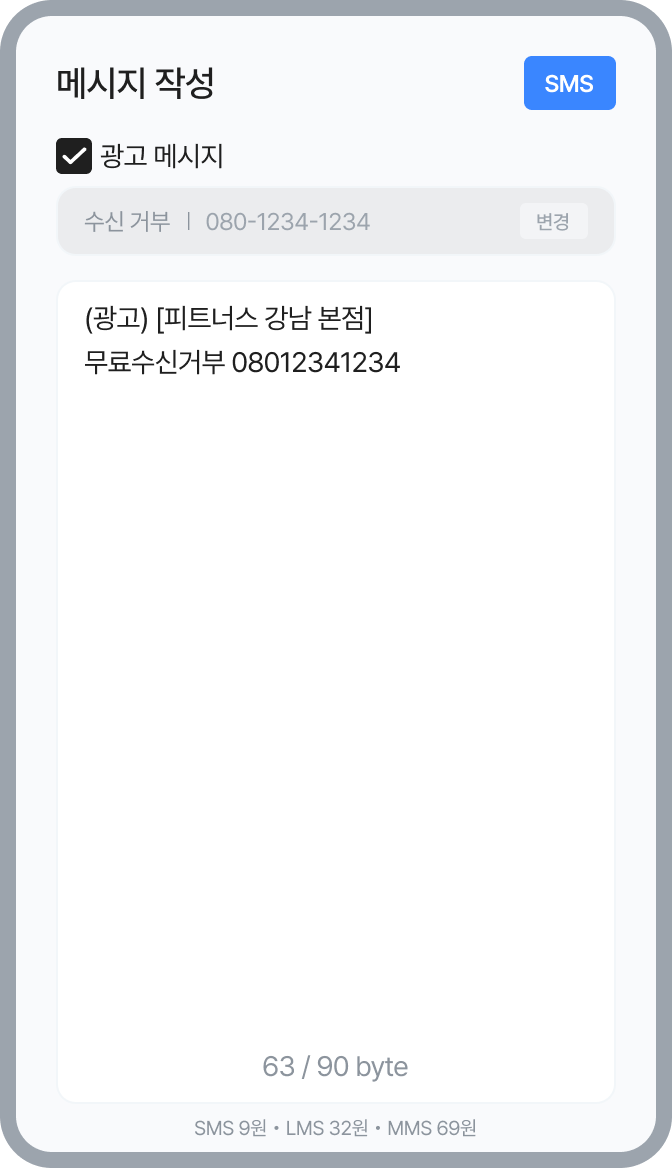 광고 메시지 체크박스를 클릭하여 광고 글 형식을 추가할 수 있어요.