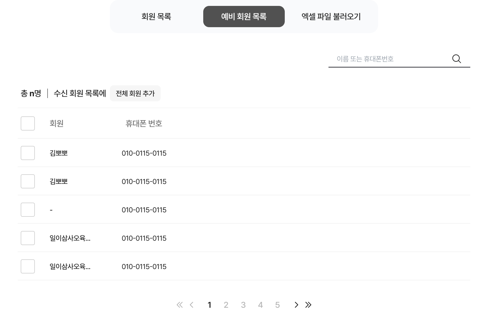 예비 회원의 동의를 받은 경우, 예비 회원을 선택하여 문자를 보낼 수 있어요.