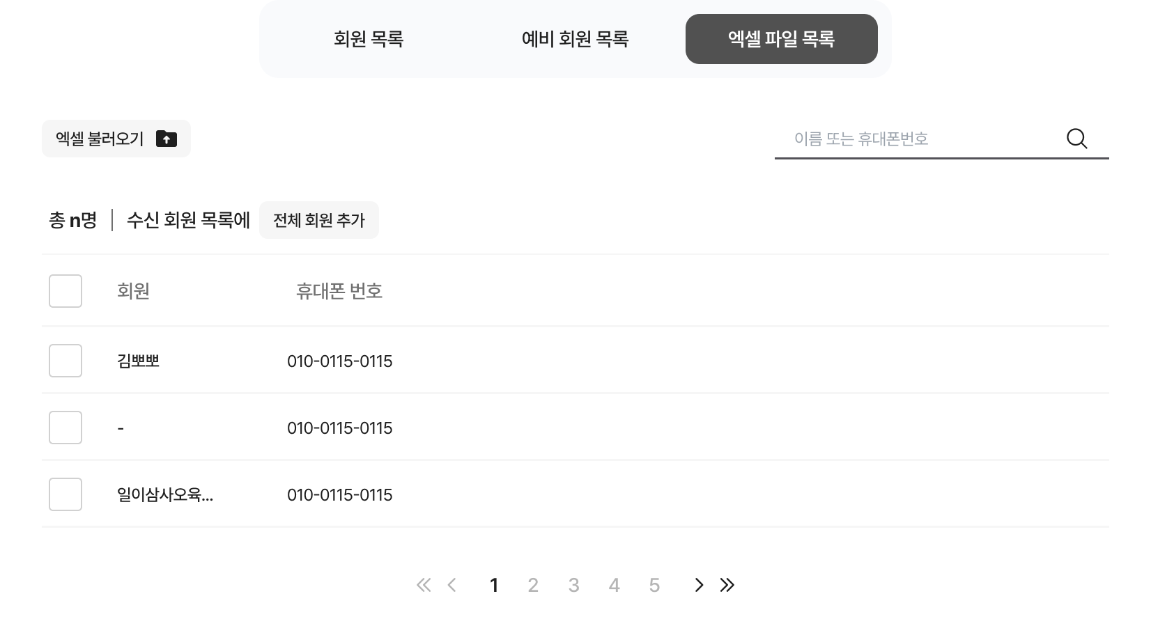 엑셀 파일 목록으로 회원을 추가할 수도 있어요. 필요한 경우, 엑셀 파일을 활용해주세요.
