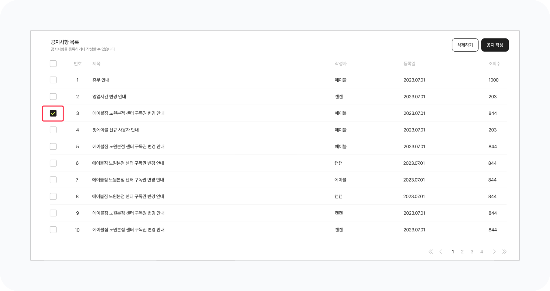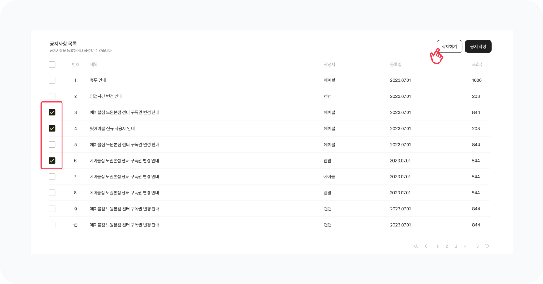 💡 여러 공지를 선택해 한 번에 삭제할 수 있어요.