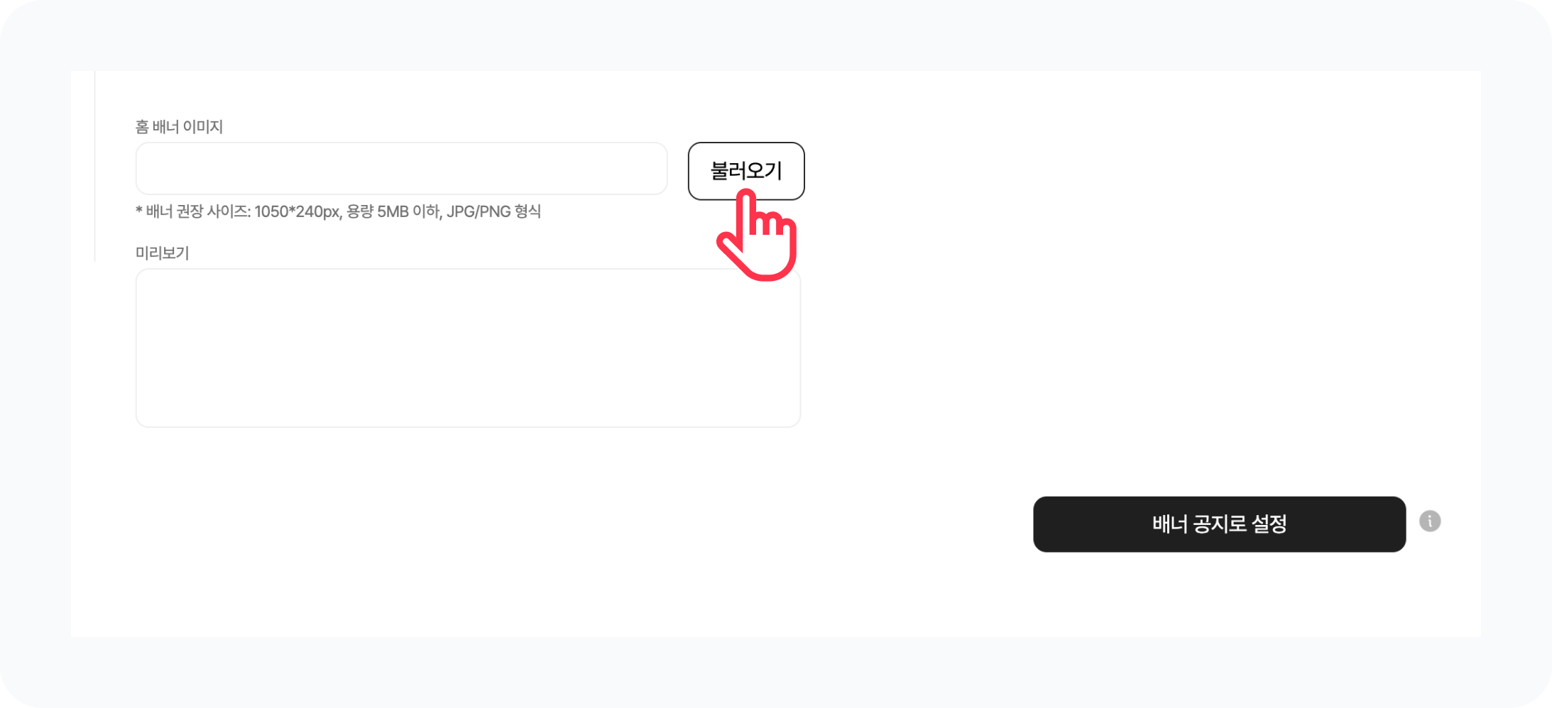 불러오기 버튼을 눌러 파일 탐색기에서 배너 이미지로 등록할 이미지를 선택해주세요.