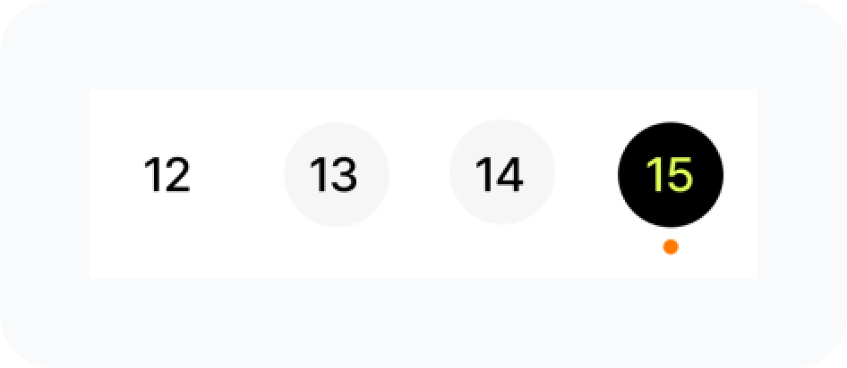 15 : 선택한 날짜입니다. 오늘 날짜는 주황색 점으로 표시합니다.