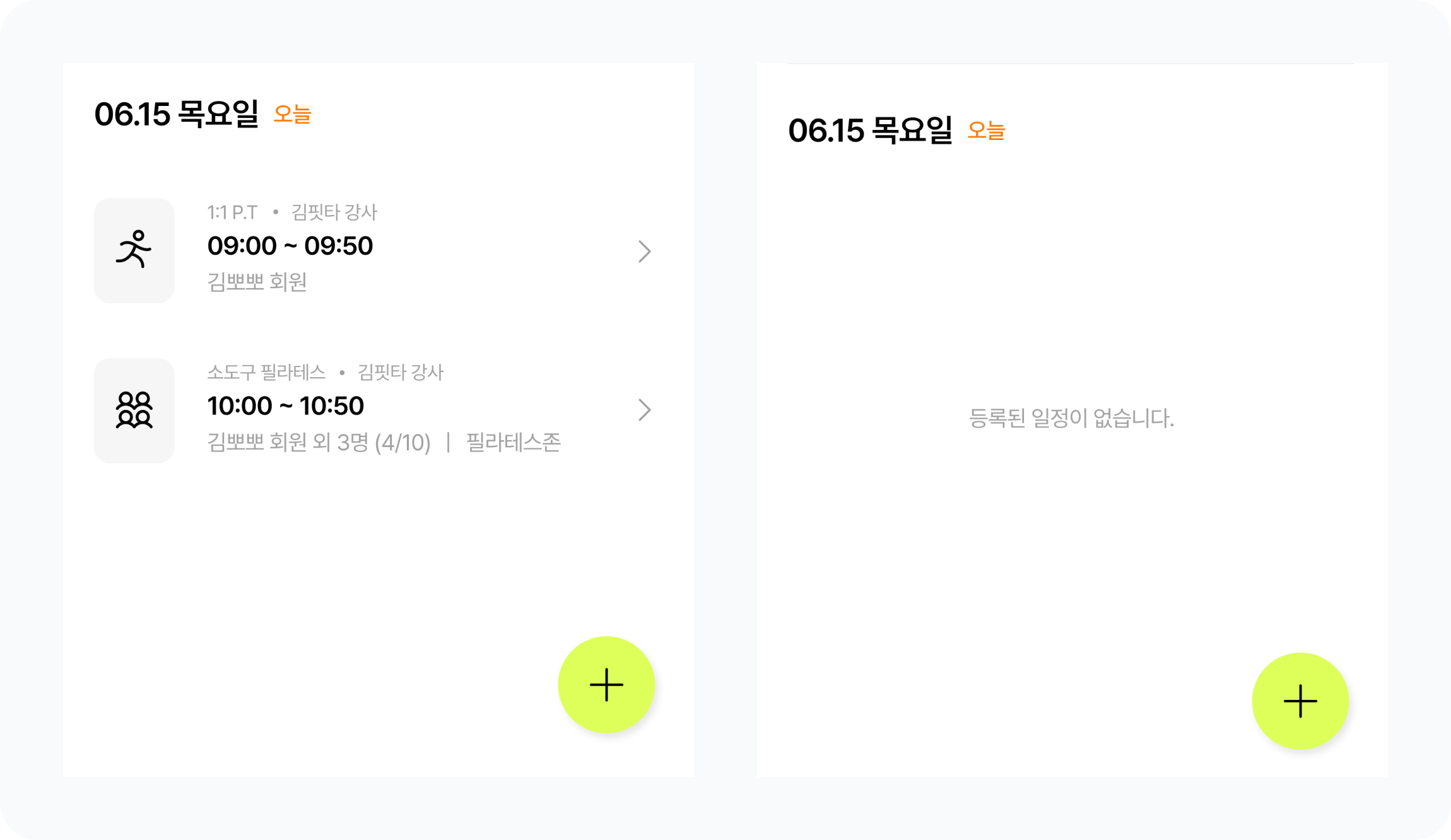 내 수업 일정과 예약 회원을 편리하게 관리할 수 있습니다.