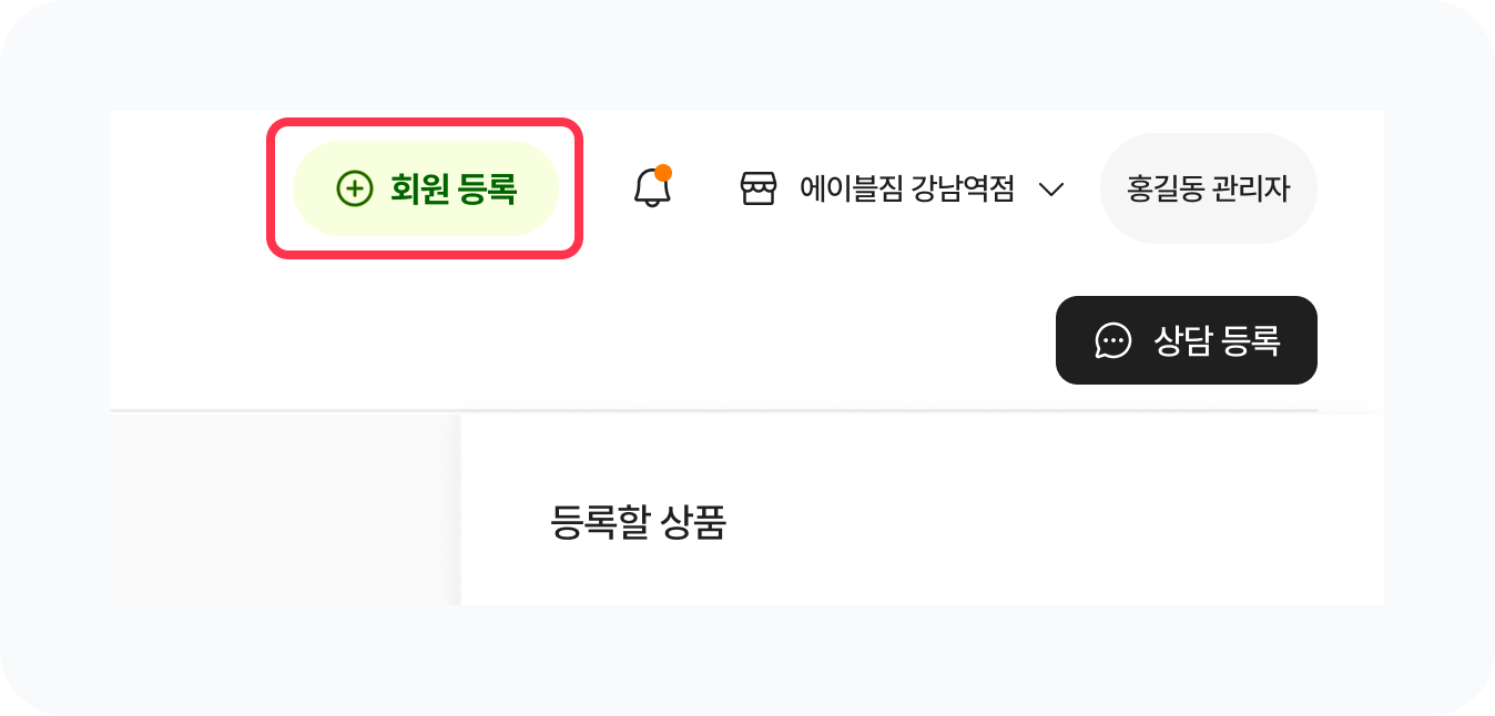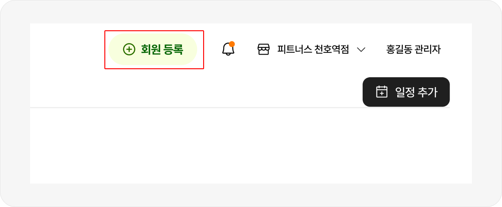 우측 상단에 위치한 [+] 회원 등록 버튼을 눌러 [회원 등록] 페이지로 이동해주세요.