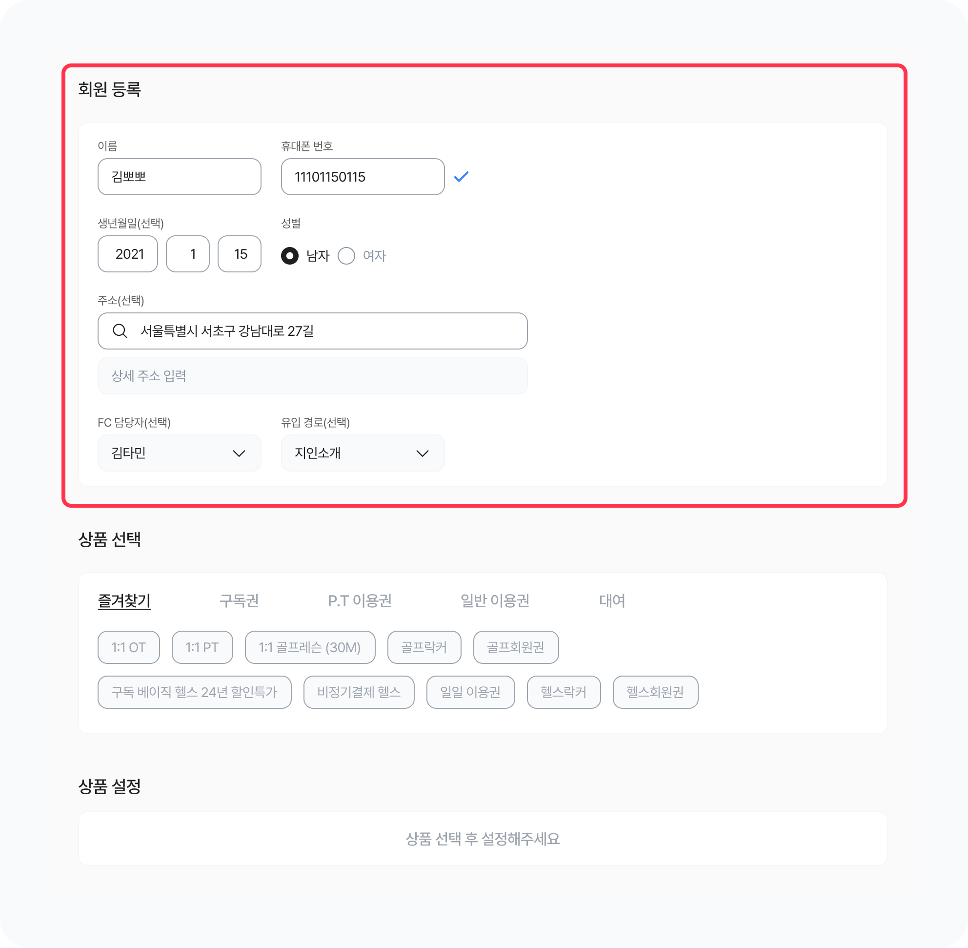 먼저 이용권을 등록 할 예비 회원의 정보를 확인하세요