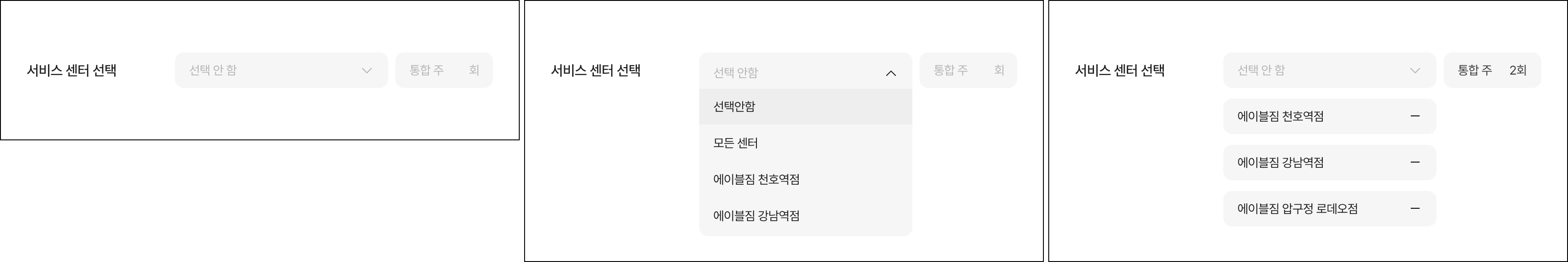모든 센터 선택 시, 모든 다지점 센터가 선택되어요. (해당 센터는 목록에 나오지 않아도 포함이에요.)
