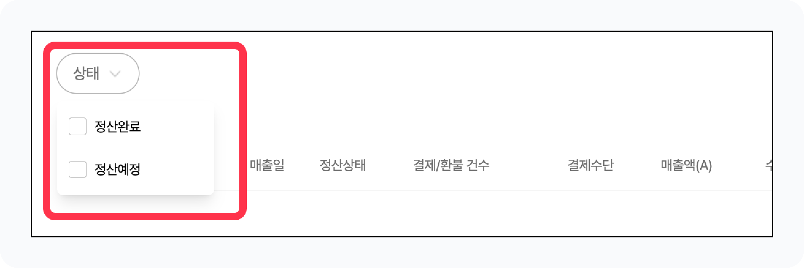상태 버튼을 눌러 정산 상태 별로 정산 내역을 확인할 수 있어요.