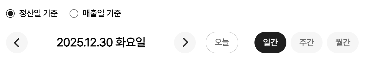 날짜는 정산액 입금일 혹은 매출일 기준으로 확인할 수 있어요.