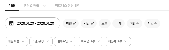 기간을 설정해 피트너스 정산내역을 확인할 수 있어요.
