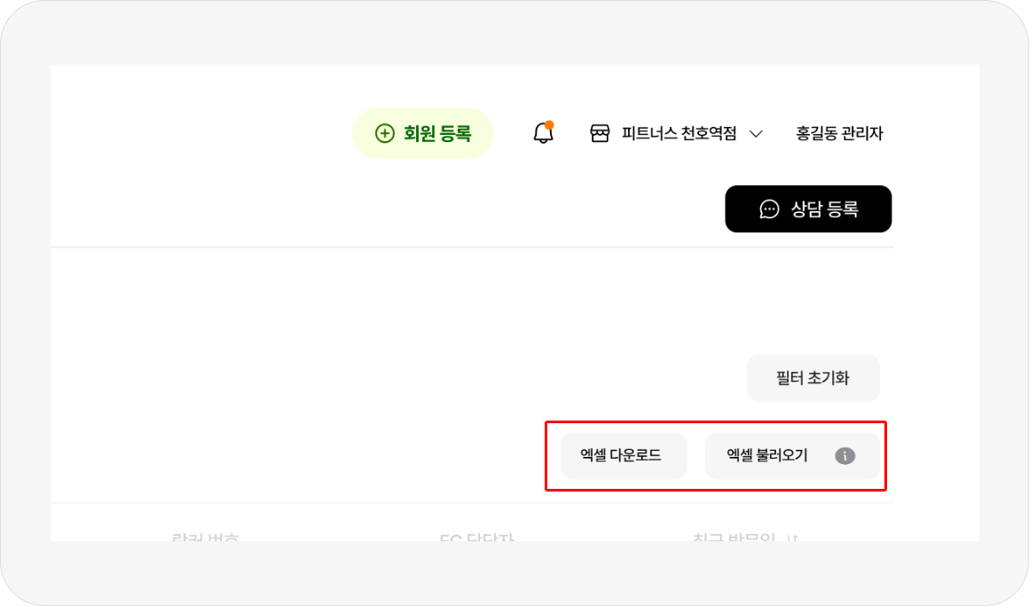 엑셀 불러오기 : 엑셀 파일에 여러 회원의 정보 입력한 후 회원 목록에 한 번에 업로드 할 수 있어요.