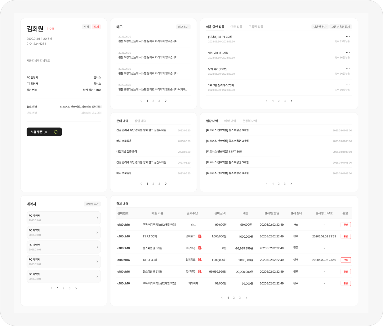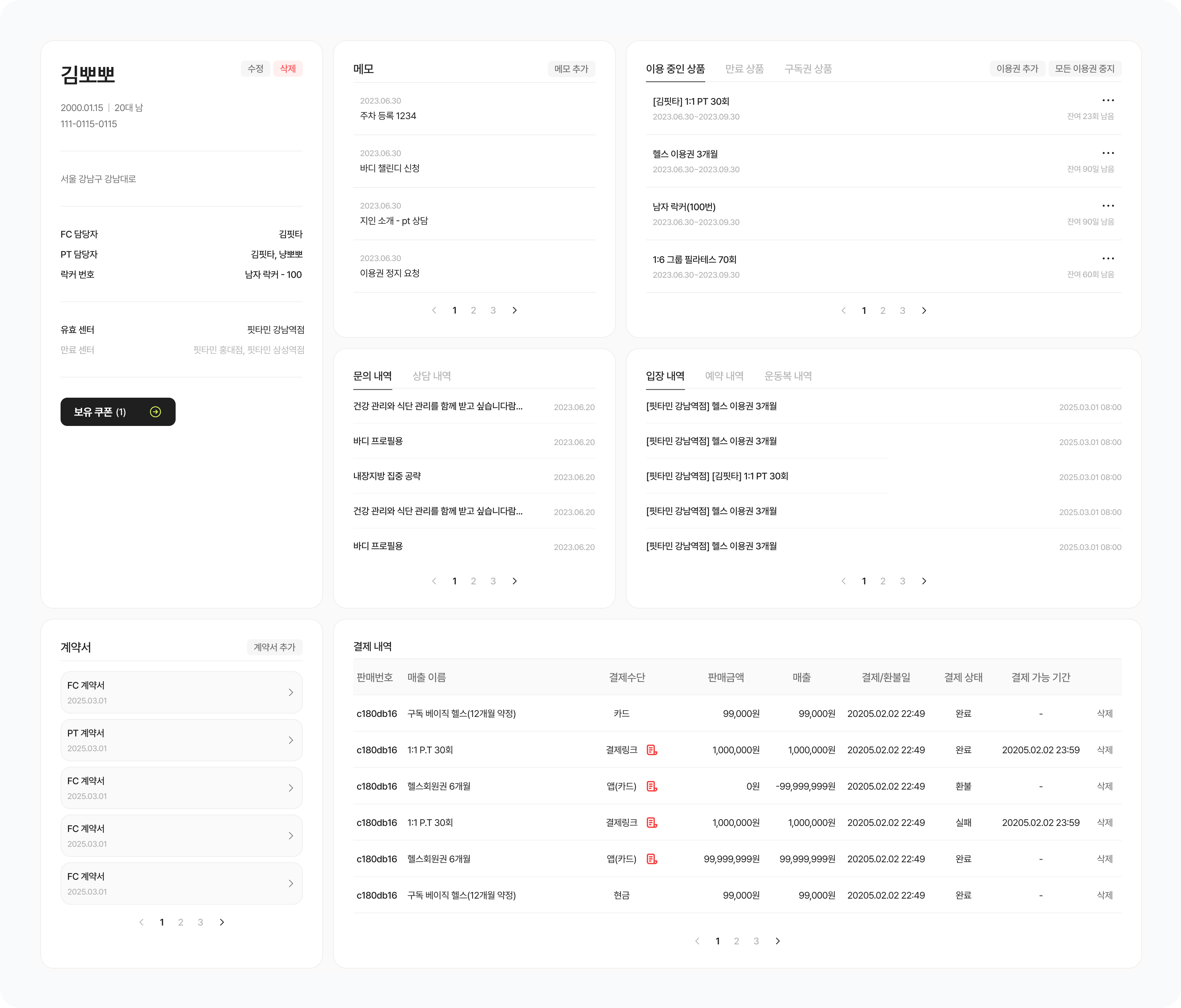 [회원 상세]페이지에서 회원의 모든 정보를 편리하게 관리할 수 있어요.
