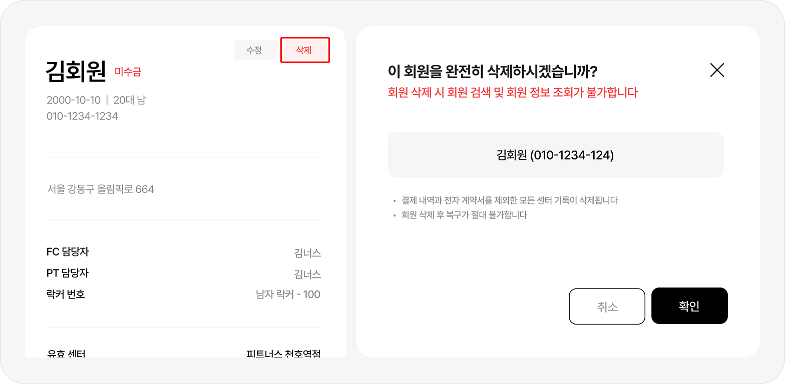 삭제 버튼을 눌러 회원을 영구적으로 삭제할 수 있습니다.