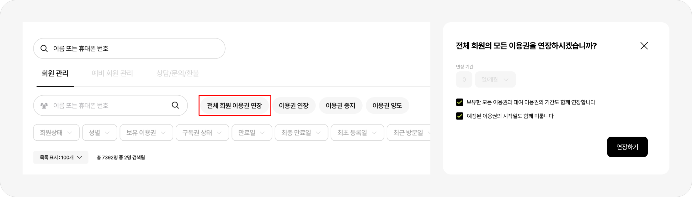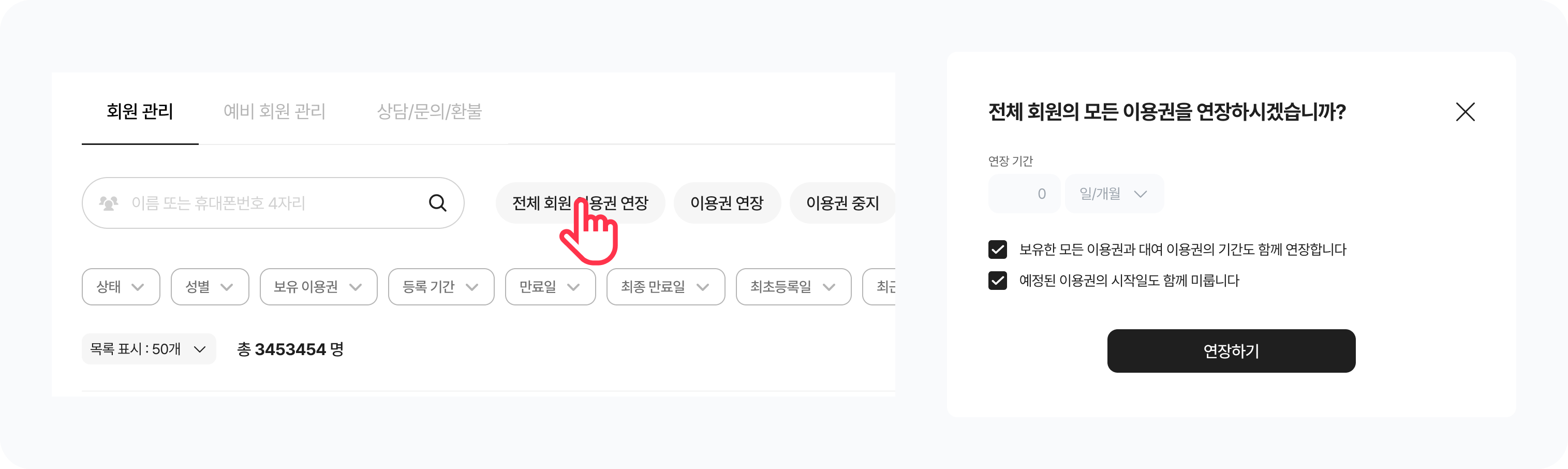 ‼️ 전체 회원 이용권 연장 후 일괄 원복이 불가하니 신중히 진행해주세요.