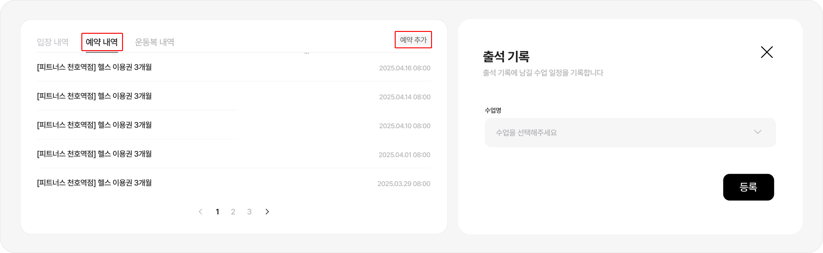 [예약 추가] 팝업에서 예약할 수업을 선택해주세요.