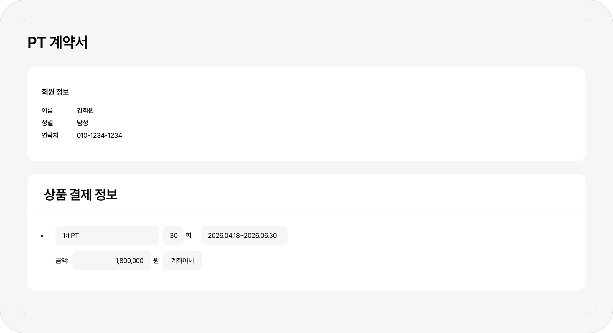회원의 전자 계약서를 조회하고 새로운 전자 계약서를 추가할 수 있어요.