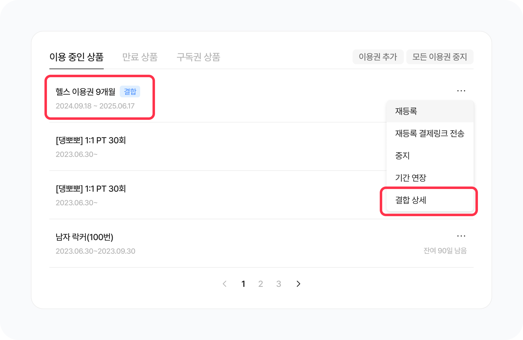 이용권 결합 시 [결합] 태그가 표시됩니다.