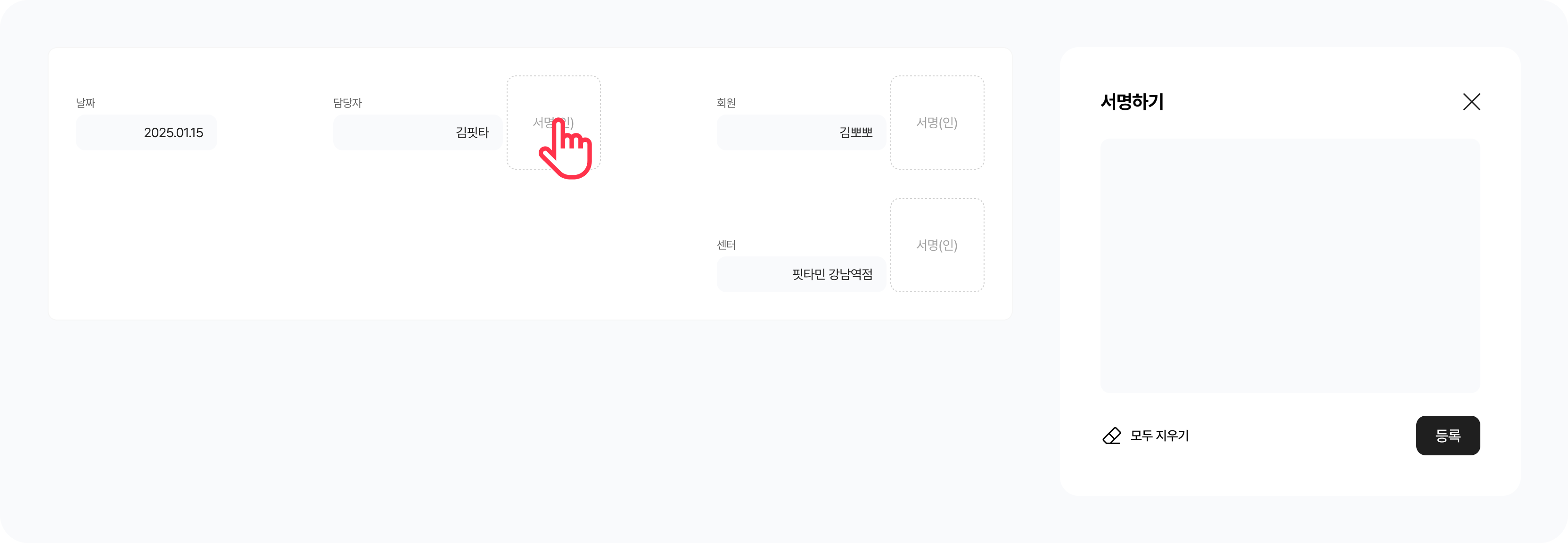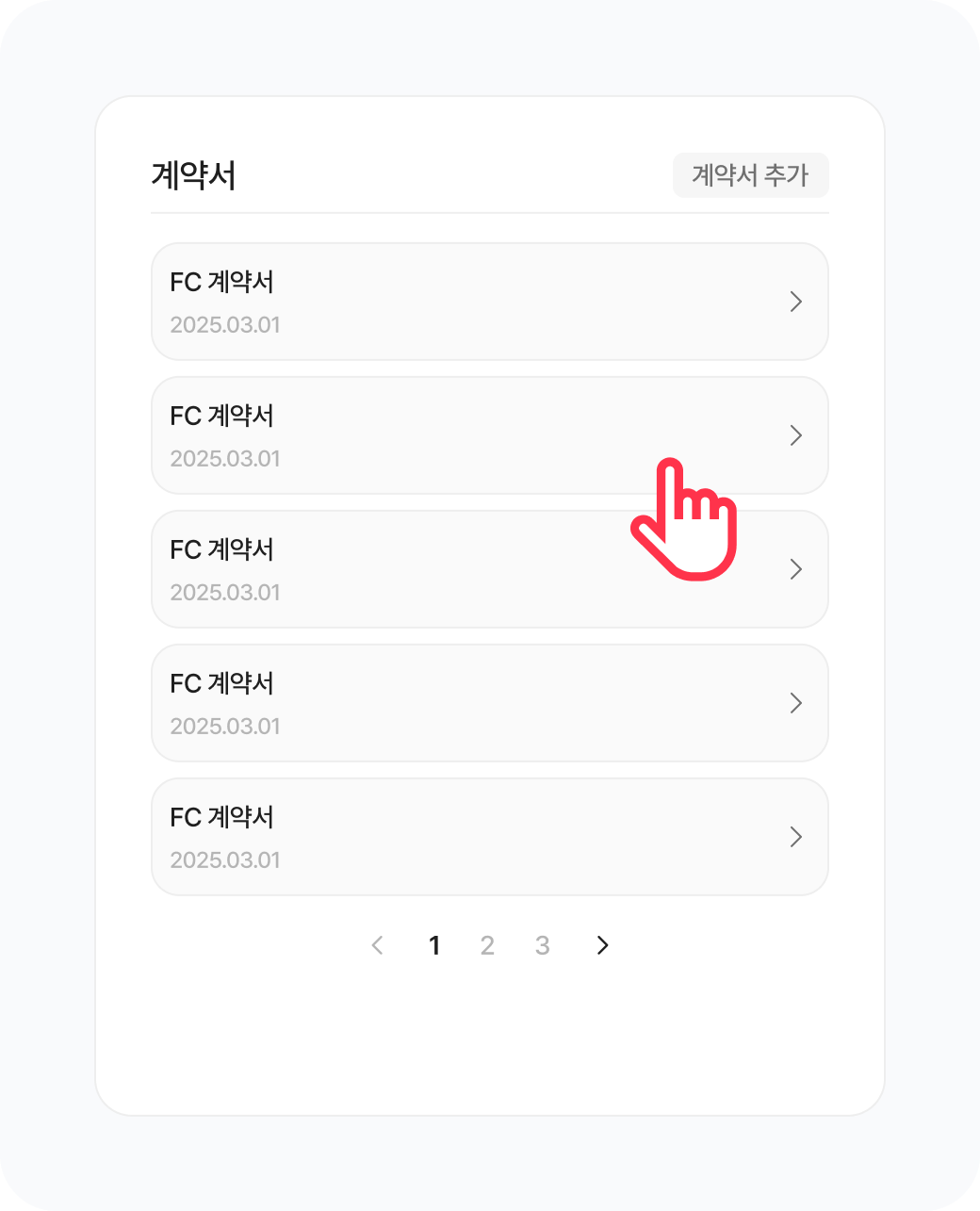 저장한 계약서는 [회원 상세] 페이지에서 확인할 수 있습니다.