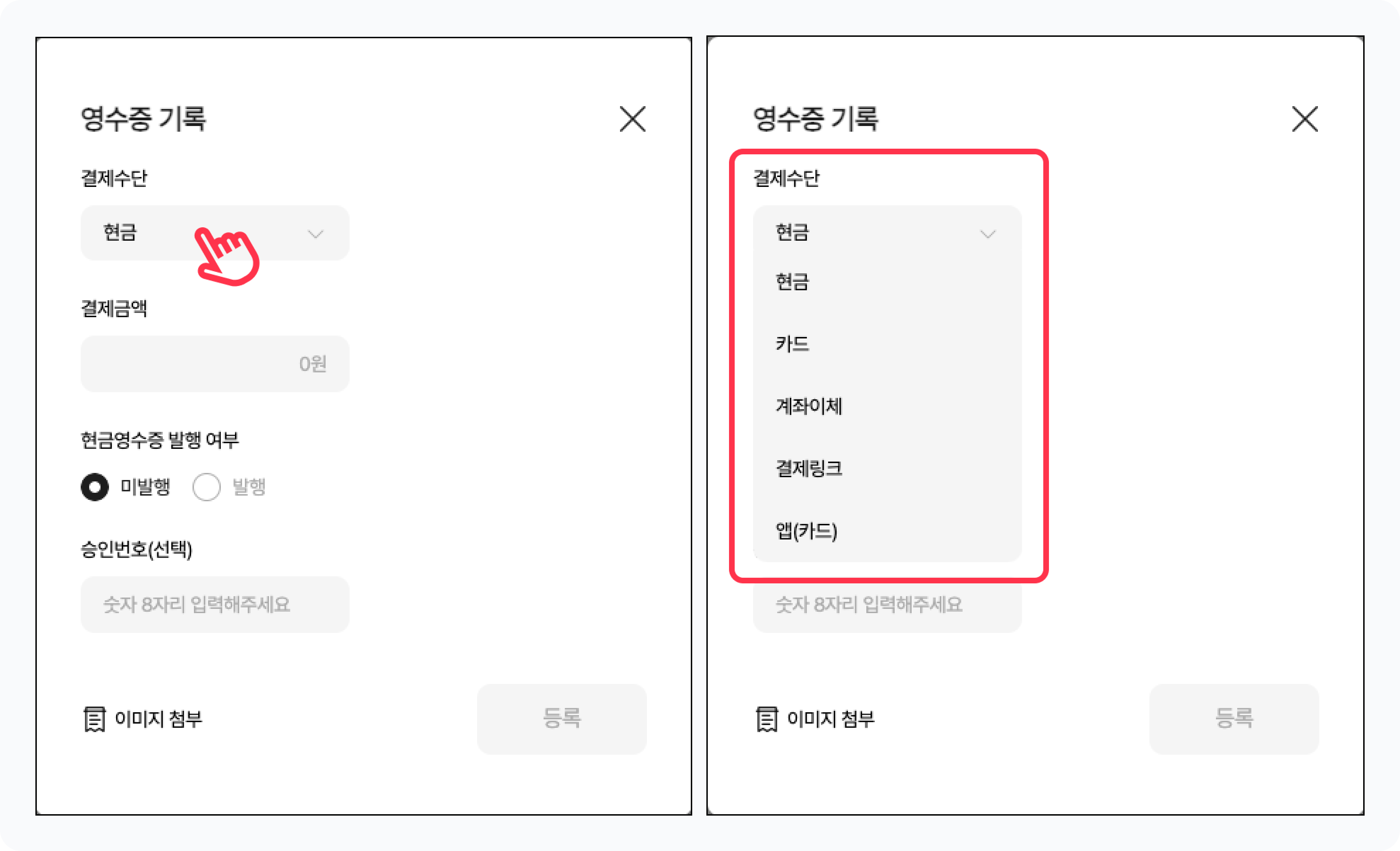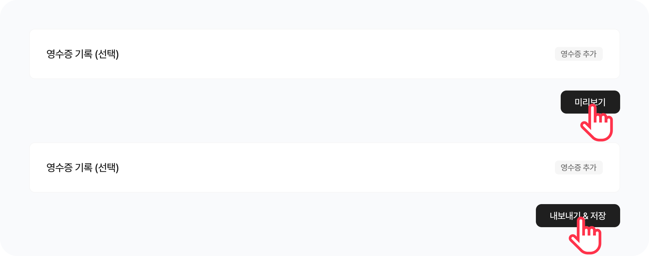 결제 정보를 입력한 후 등록 버튼을 눌러 영수증을 등록해주세요.